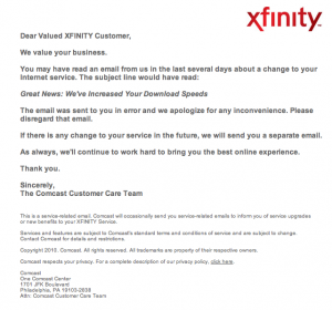 Sorry for the email. We’ve investigated this and corrected the problem. Hopefully this will not happen again. If you need help with anything else, let me know. I work for Comcast 🙂
